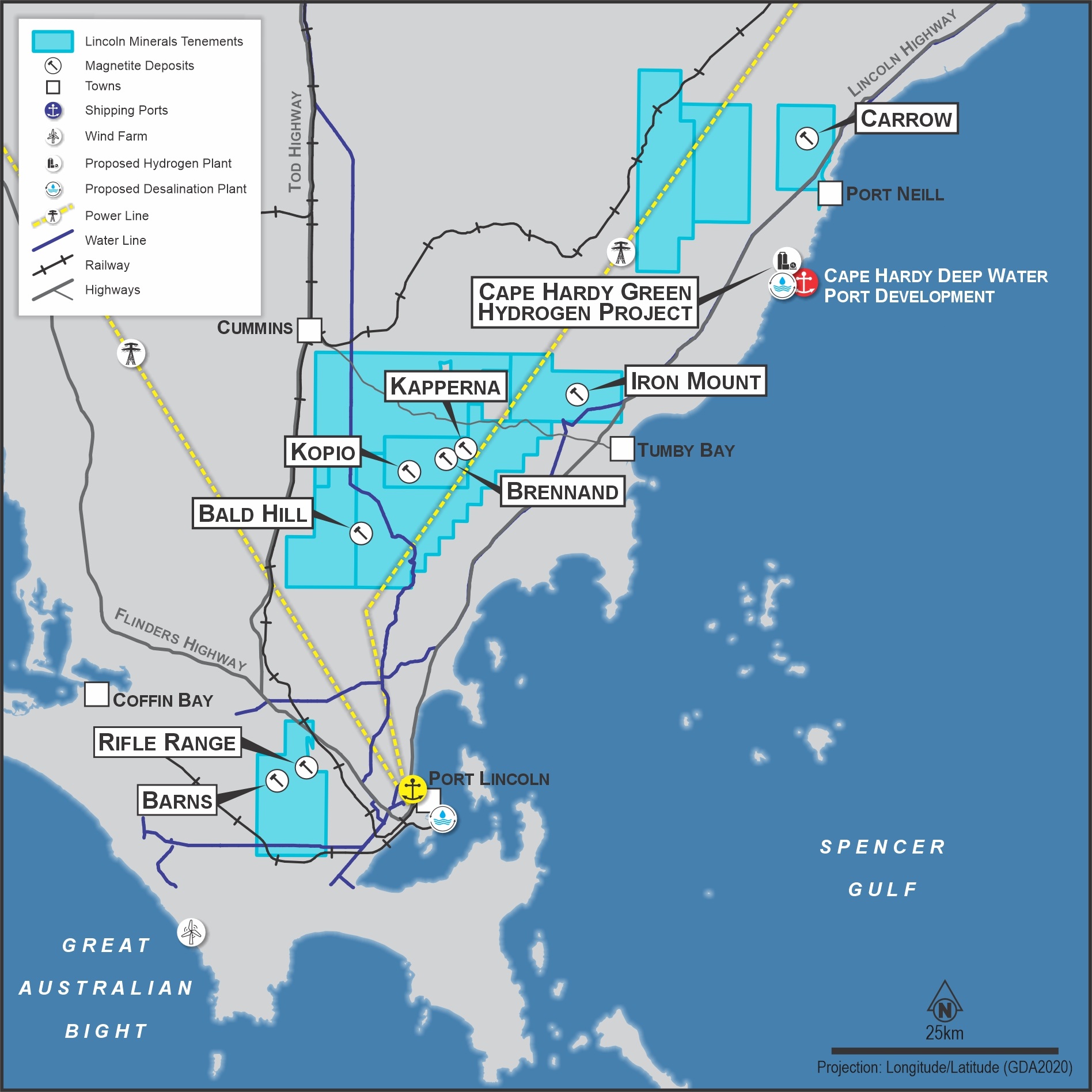 Overview of Lincoln Minerals’ magnetite iron ore tenements on the Eyre Peninsula, South Australia