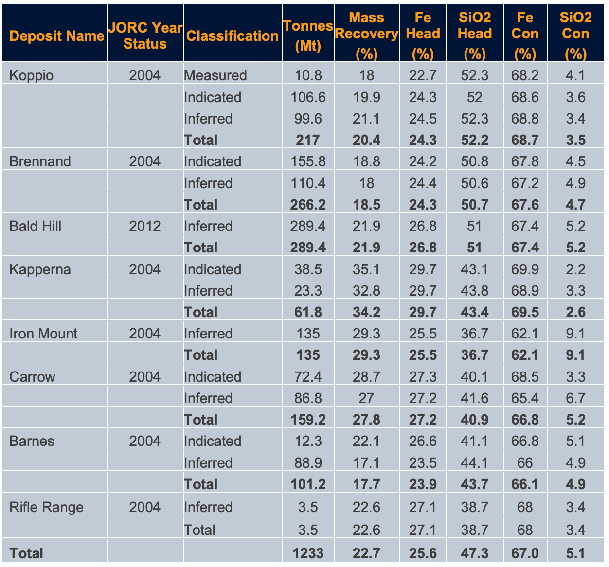 A detailed study on the resources (excluding Barnes and Rifle Range) was completed in 2012. The study established conceptual designs for mining and processing over a range of output scenarios. The study also considered the metallurgy and concluded that conventional grinding and magnetic separation at a coarse grind size of P80 75µm could produce a high-grade magnetite concentrate.